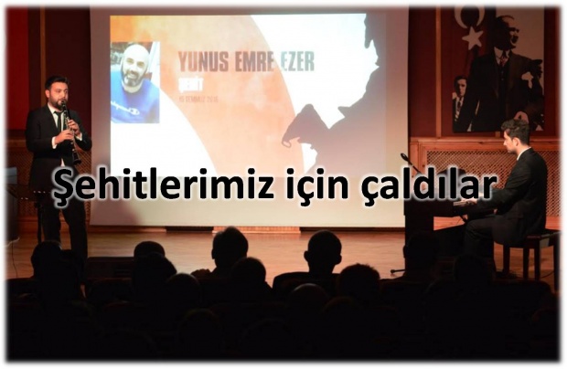 Yapılan konuşmaların ardından tören Eğitim Fakültesi Güzel Sanatlar Bölümü öğretim elemanları Övgü Özparlak ve Reha Sarıkaya’nın müzik dinletisiyle devam etti. Dinleti, ‘15 Temmuz Demokrasi Şehitleri’nin fotoğraflarıyla birlikte sunuldu. ‘Selanik Türküsü’, ‘Çanakkale Türküsü’ ve ‘Yemen Türküsü’nün çalındığı dinletide, 15 Temmuz Demokrasi Şehitleri’nin fotoğrafları gösterildi. Zaman zaman duygusal anların yaşandığı törende, dinleti büyük beğeni topladı.