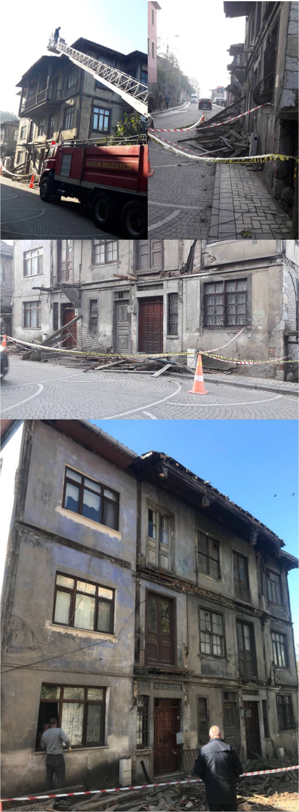 Ahşap binanın göçen ikinci kat balkonuyla birlikte destekleri kaybolan üçüncü kat balkonu da güvenlik amacıyla kontrollü bir şekilde söküldü.