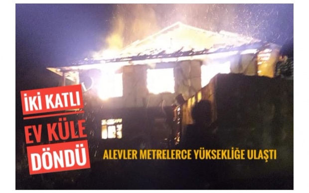 Korku dolu anlara neden olan yangında iki katlı ev tamamen kullanılamaz hale geldi.