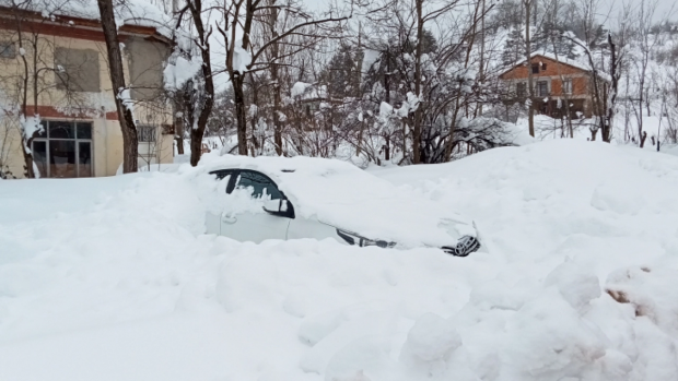 Bartın' a bağlı 500 rakımda bulunan Aydınlar köyünde kar kalınlığı 1 buçuk metreye ulaşırken, köyde park halindeki araçlar tamamen karların altında kaldı.