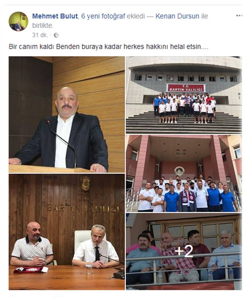 Bartınspor Kulüp Başkanı Mehmet Bulut 2-0 galibiyetle sonuçlanan Çubukspor maçının ardından sosyal medya hesabından yaptığı paylaşımla adeta veda sinyali verdi.