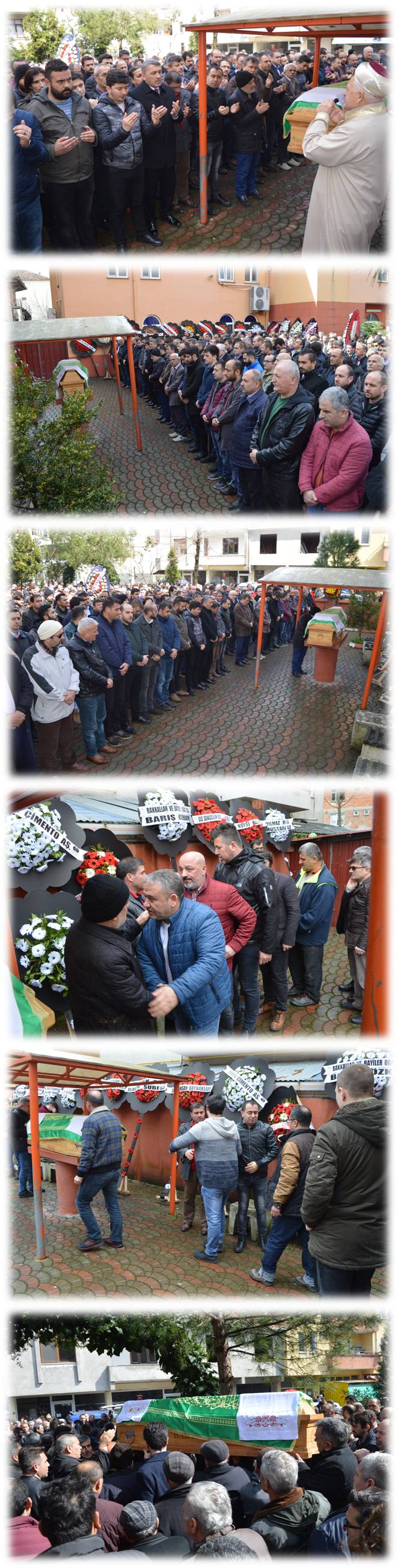 Öğle namazına müteakip kılınan cenaze namazında cami avlusunda yer kalmayınca cemaatin bir kısmı cami içerisinde bir kısmı da avlu dışındaki yolda saf tuttu.