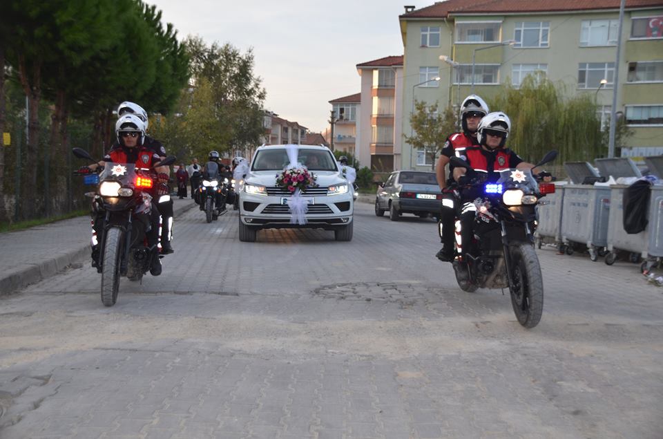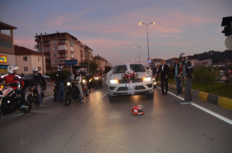 Aynı zamanda motosiklet tutkunu da olan “Kuşçu Erol”un 150 kişilik motosiklet grubu arkadaşları düğün konvoyunda yeni çifti yalnız bırakmayarak destek oldular. Bartın İl Emniyet Müdürlüğü Motorize yunus ekipleri de kısa süreli konvoyda yer aldı.