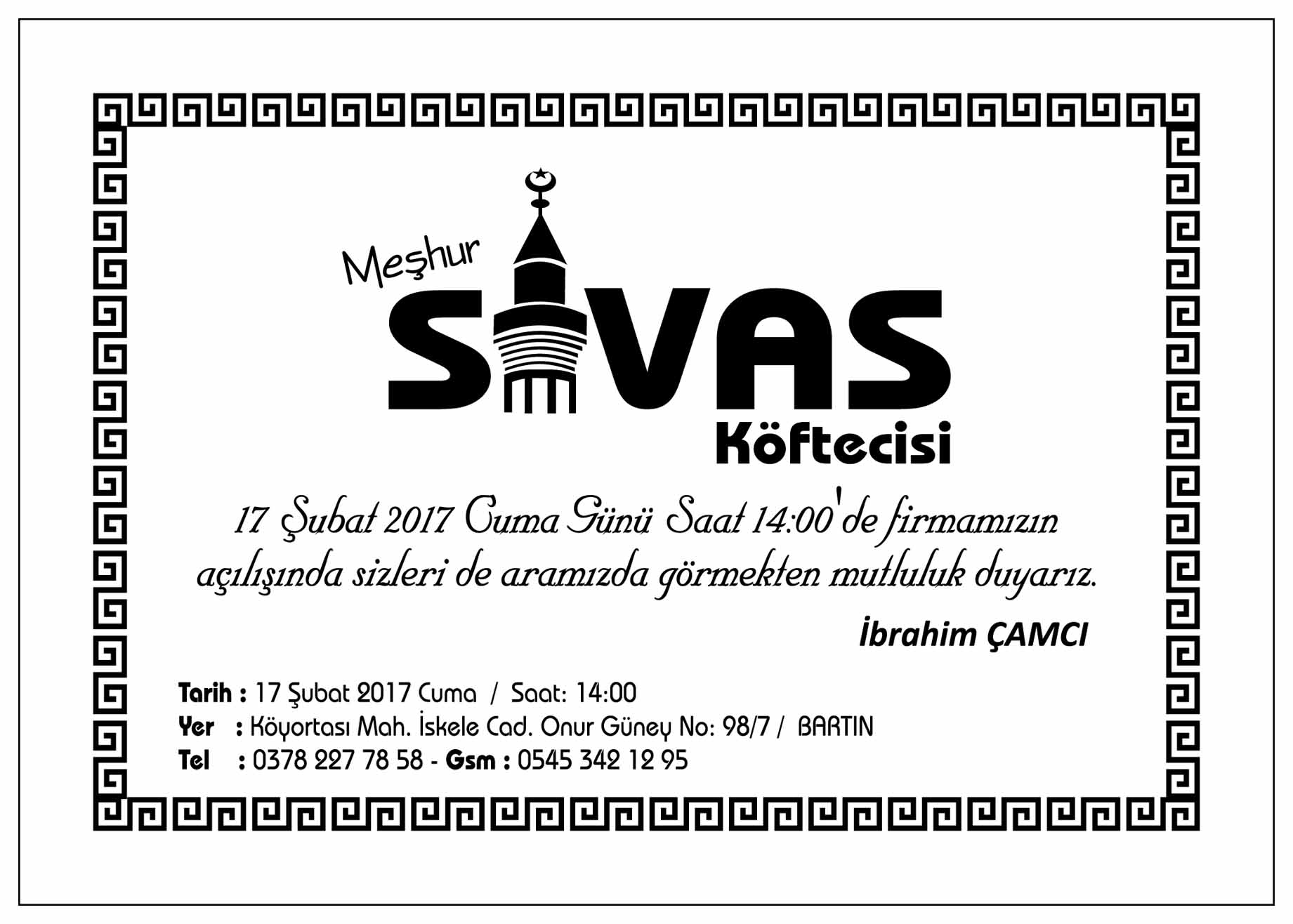 Lezzetin adresi Meşhur Sivas Köftecisi Köyortası Mahallesi İskele Caddesi’ndeki adresinde açılışı yapılarak Bartın halkının hizmetine girecek.
