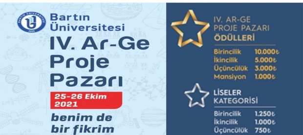 Bartın Üniversitesi tarafından bu yıl dördüncüsü düzenlenen ihtisas odaklı akıllı teknolojiler alanındaki tematik Ar-Ge Proje Pazarı, 25-26 Ekim 2021 tarihinde düzenlenecek.