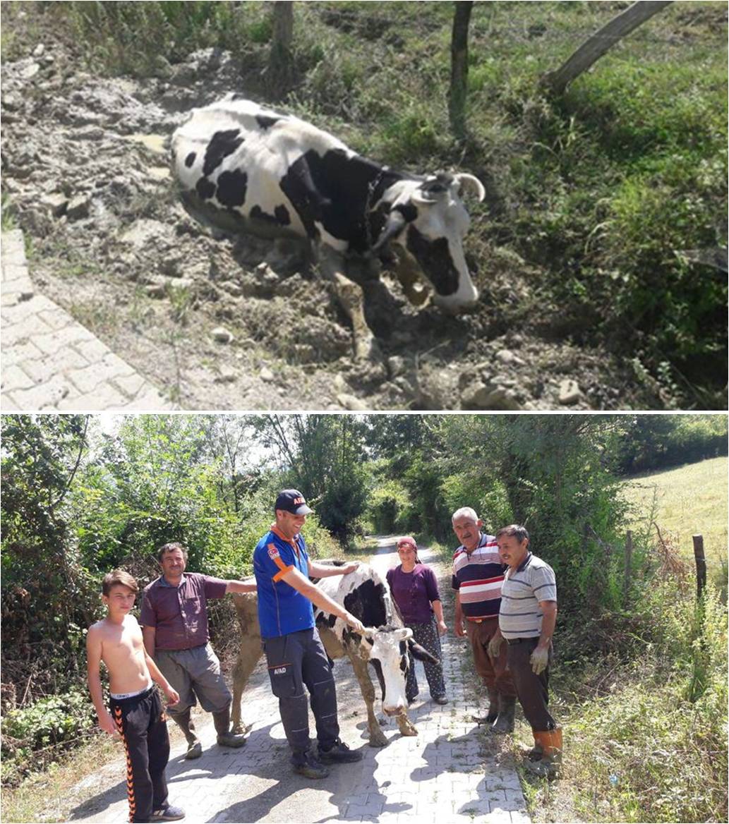 Olayın yaşandığı Çayır Köyüne ulaşan AFAD ekipleri yaklaşık 1 saatlik çalışmanın ardından ineği saplandığı çamurdan çıkararak sahiplerine teslim etti.