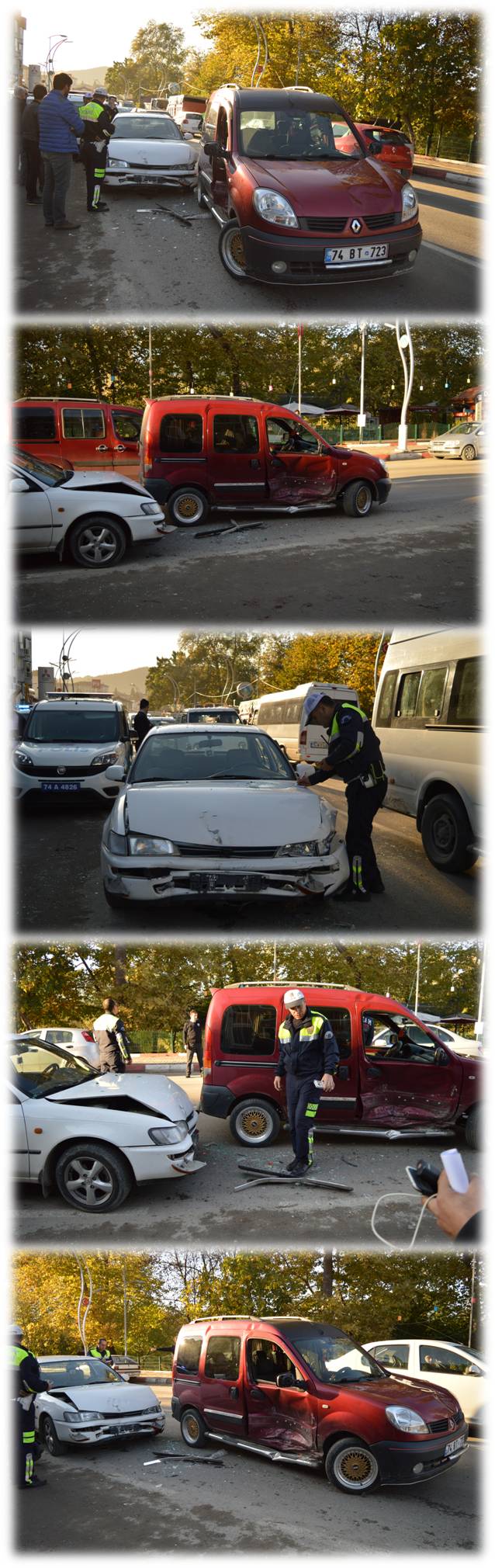 Görgü tanıklarının iddialarına göre Yalı bölgesinden Orduyeri istikametine seyir halinde olan 74 AZ 004 plakalı otomobil o sırada yolun karşı şeridinde park halinde bulunan ve dönüş yapmak üzere yola çıkan 74 bt 723 plakalı araçla çarpıştı.