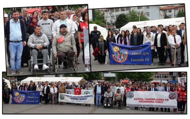 Türkiye Sakatlar Derneği Bartın Şubesi tarafından Engelliler Haftası dolayısıyla Bartın’da yürüyüş düzenlendi. Kemerköprü’den başlayıp Hükümet Caddesi boyunca devam eden yürüyüşe Türkiye Sakatlar Derneği Bartın Şubesi ve Bartın Otizmli ve Engelliler Destek Eğitim Dayanışma Spor Kulübü Derneği (BOED-DER SK), Aile Çalışma ve Sosyal Hizmetler İl Müdürlüğü, Umut Özel Eğitim Okulları, Sosyal Yardımlaşma ve Dayanışma Vakfı, Bartın Belediye Başkan Yardımcısı Necmi Balık, İŞKUR İl Müdürü Adnan Arslan, Bartın Şehit Aileleri ve Gaziler Yardımlaşma ve Dayanışma Derneği Başkanı Ekrem Altunok, engelliler ve vatandaşlar katıldı. Yürüyüş Cumhuriyet Meydanında sona ererken Türkiye Sakatlar Derneği Bartın Şubesi ve BOED-DER SK, meydandaki Atatürk Anıtına çelenk sundu.