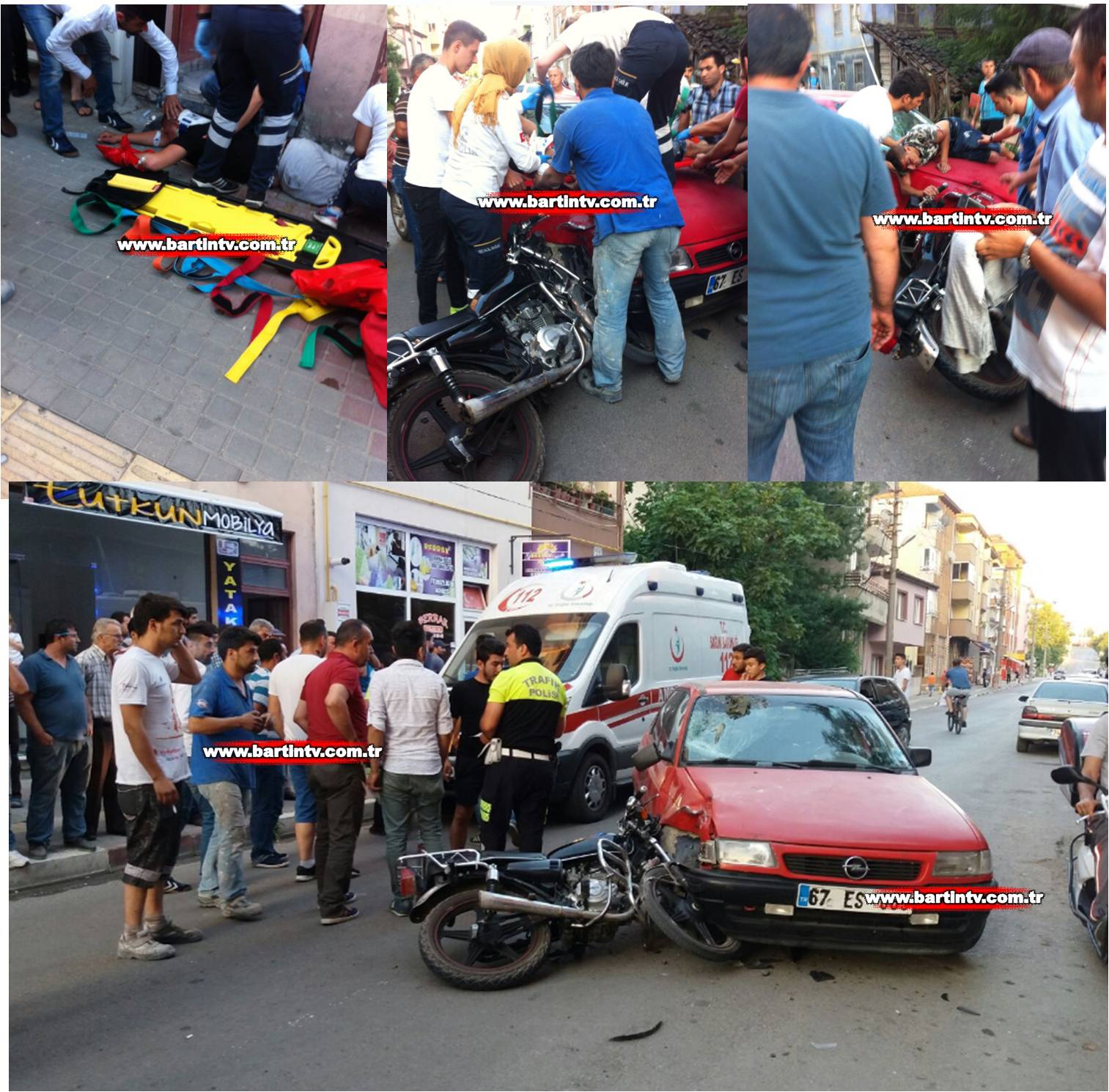 Bartın kent merkezi Hendekyanı Caddesinde meydana gelen trafik kazasında otomobil ile motosiklet çarpıştı.