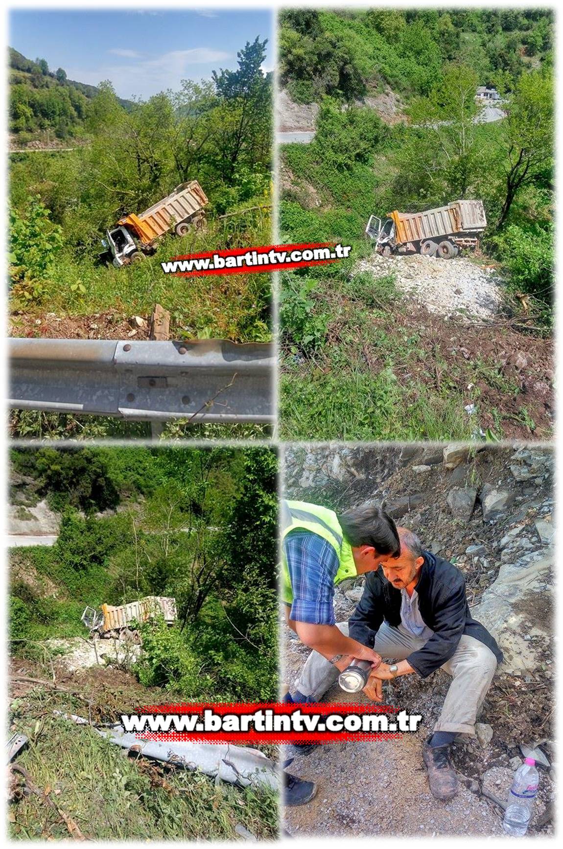 Bartın Kurucaşile yolunda sürücüsünün kontrolünden çıkan hafriyat kamyonu çarptığı bariyerleri de aşarak şarampole devrildi.