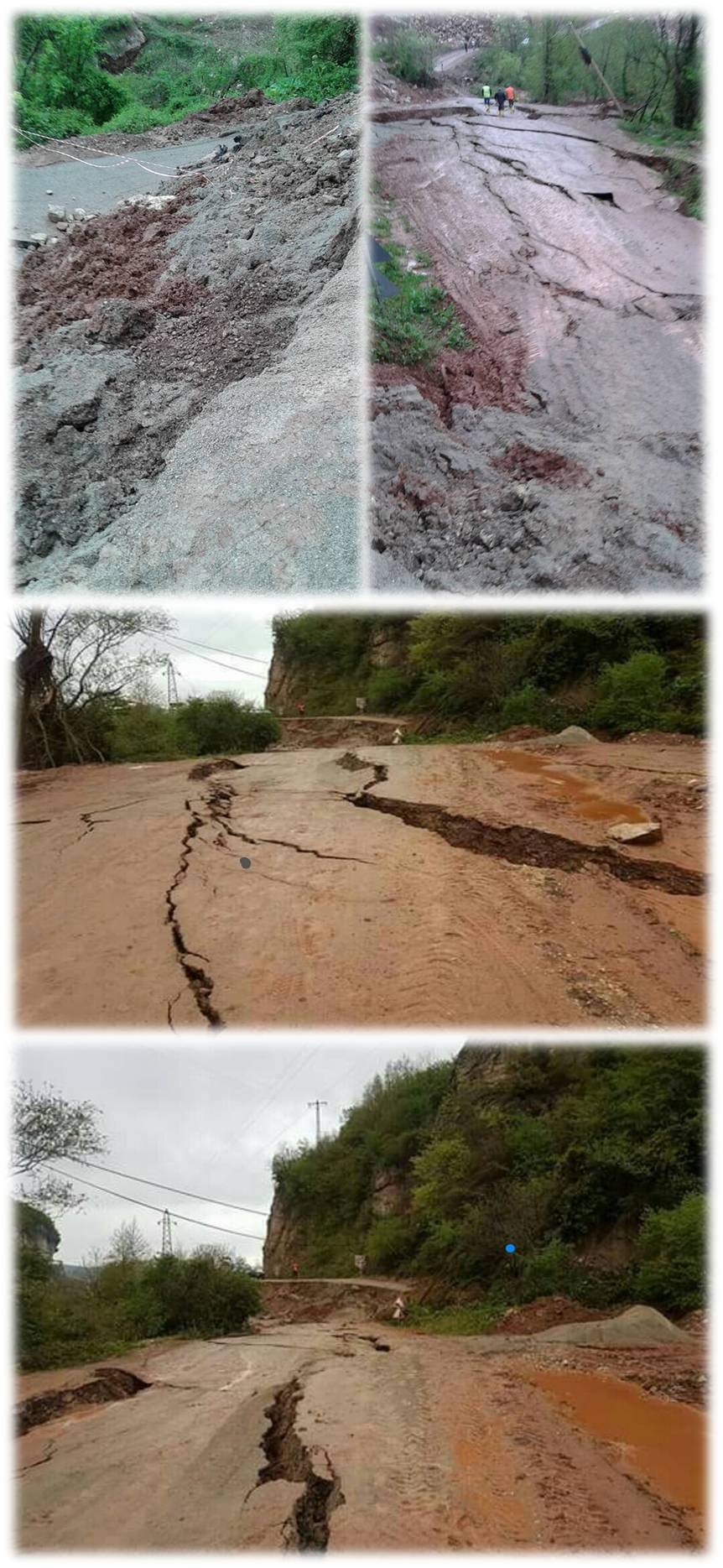 Heyelan nedeniyle yolun göçen kısmının devamında da metrelerce uzunlukta çatlaklar oluştu.