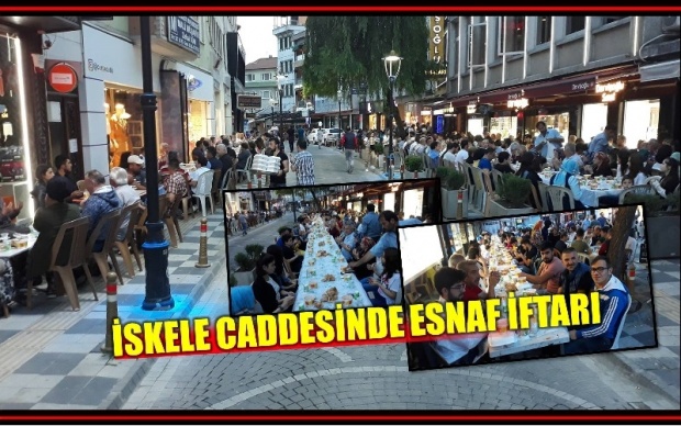 İskele Caddesinde kurulan sofralarda bir araya gelen esnaflar hep birlikte iftar yaptı. İftar yemeğine dükkan ve işyeri bulunan esnaflar, çalışanlar ve aileleri katıldı. İftar öncesinde Kur-an’ı Kerim tilaveti okunurken dualar edildi.