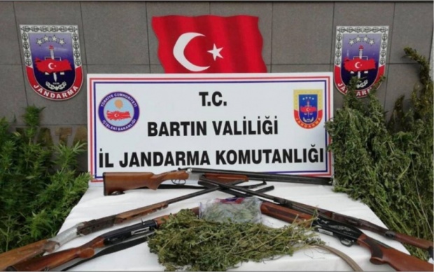 İl Jandarma Komutanlığınca operasyona ilişkin yapılan açıklamada, “Bartın İl Jandarma Komutanlığı ekiplerince Amasra ilçesi Esenler Köyünde uyuşturucu madde imal etmek amacıyla yasadışı kenevir ekimi yapıldığı duyumunun alınması üzerine olaya karışan 1 şüpheli yakalanmış, şüphelinin evinde ve bahçesinde yapılan aramada 60 gram kubar esrar maddesi, 75 kök kenevir bitkisi ve 5 adet ruhsatsız av tüfeği ele geçirilmiştir. Olayla ilgili şüpheliler Amasra Cumhuriyet Başsavcılığının talimatı ile gözaltına alınmış olup gerekli adli tahkikat işlemlerine başlanılmıştır.” ifadelerine yer verildi.