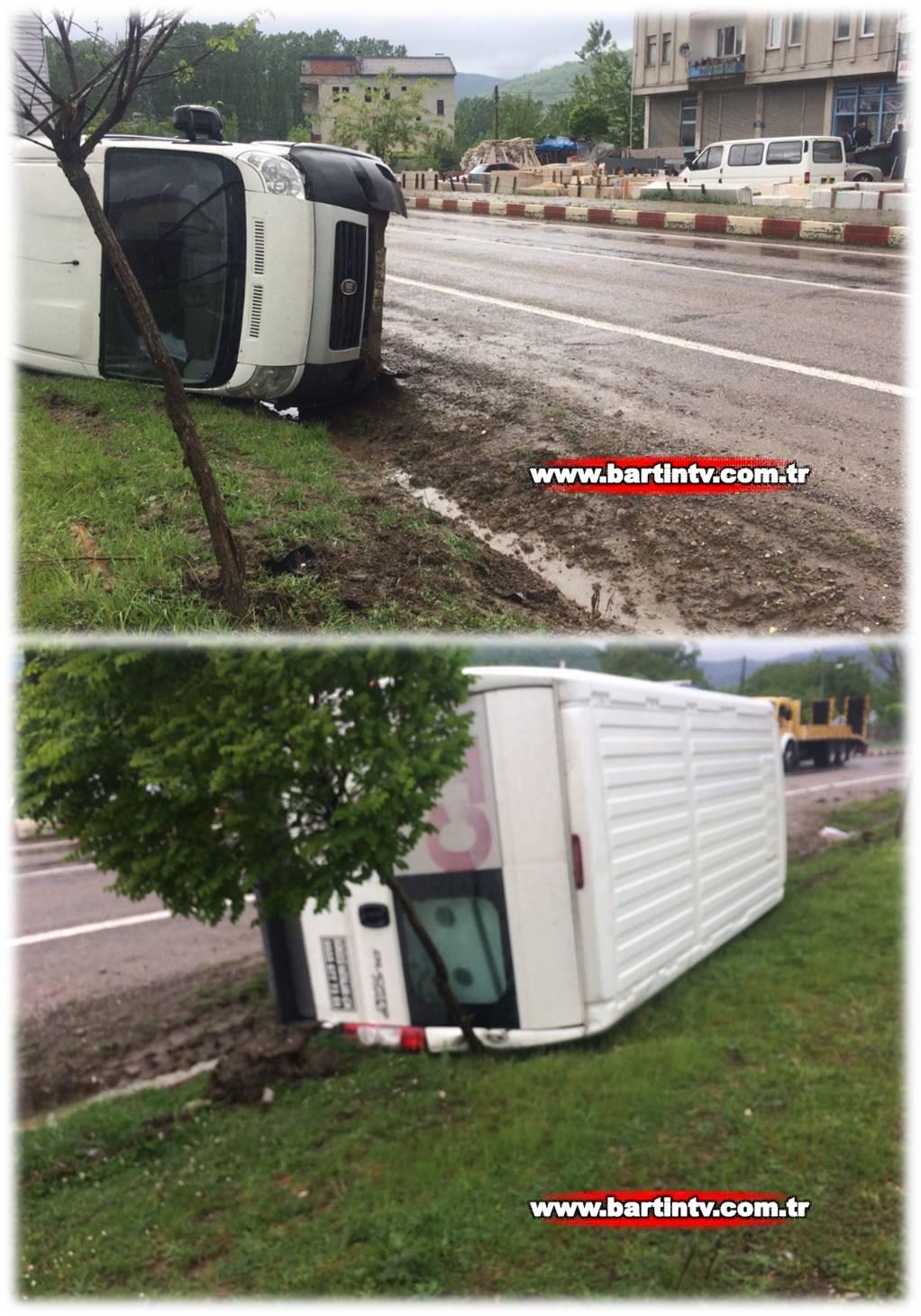 Bartın Karabük yolunda meydana gelen kazada kontrolden çıkan panelvan minibüs devrilerek durabildi.