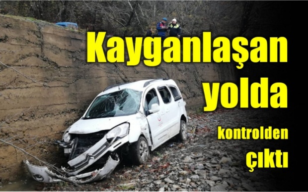 Bartın’dan Karabük’e test için numune götüren İl Sağlık Müdürlüğü aracı Abdipaşa Beldesinde bağlı Ulupınar köyüne geldiği sırada yolun kaygan olması nedeniyle kontrolden çıkarak dereye yuvarlandı.