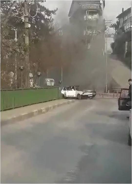 Asma Köprü Kavşağına geldiğinde motor bölümünden dumanlar çıktığını fark eden otomobil sürücüsü aracından inerek yangını söndürmeye çalıştı.
