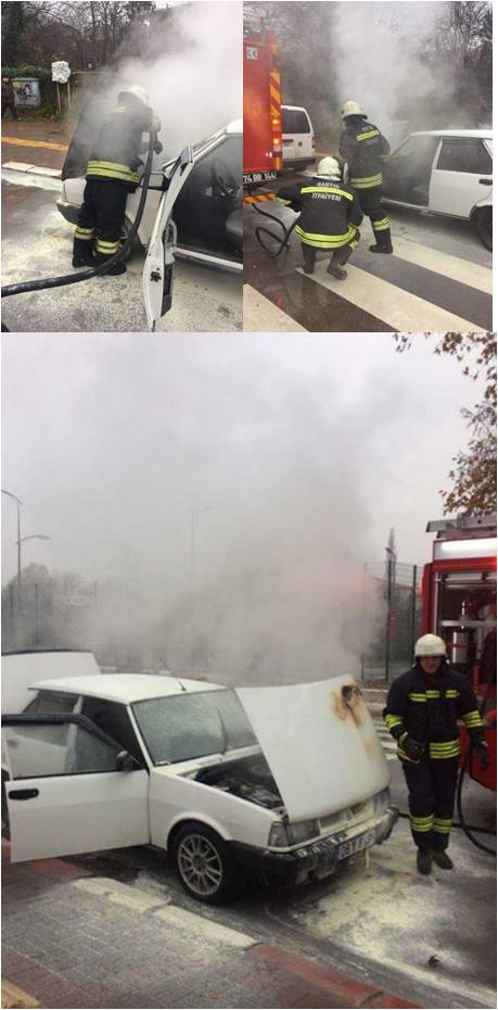 Yalı mevkiinde seyir halindeyken motor kısmından dumanlar çıkmaya başlayan otomobilin sürücüsü hemen aracını yol kenarına çekerek itfaiyeyi aradı. ,