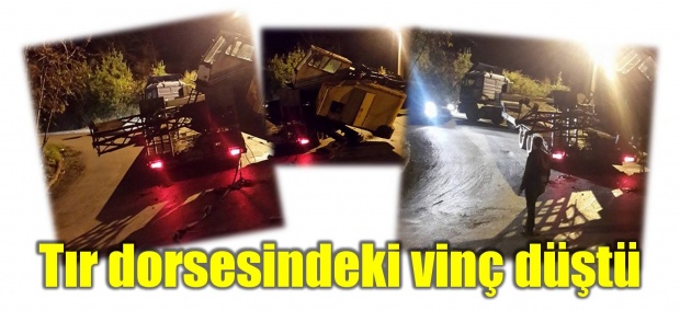Amasra çıkışındaki keskin virajlardan birinde yaşanan olayda bir tır dorsesinde taşınan vinç yola devrildi.