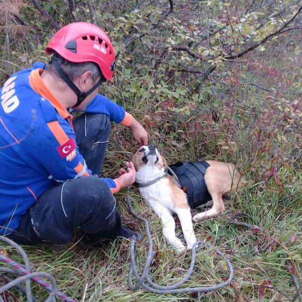İhbar üzerine olay yerine giden Arama Kurtarma Teknisyenleri yaptıkları çalışma sonucu mahsur kalan köpeği kurtardı.