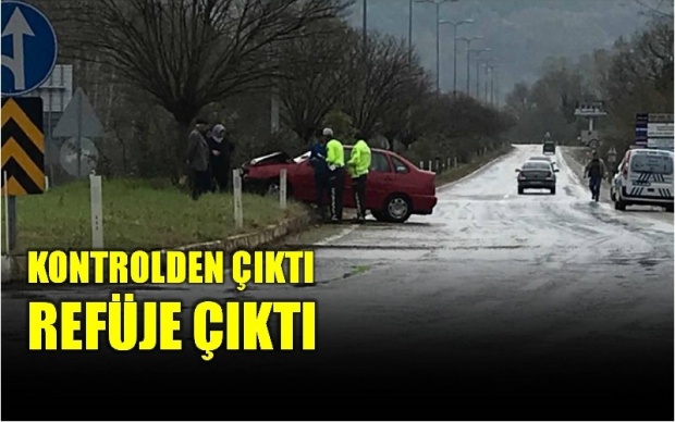 Arıt-Amasra yol kavşağında meydana gelen kazada sürücüsünün kontrolünden çıkan otomobil orta refüje çarparak durabildi.